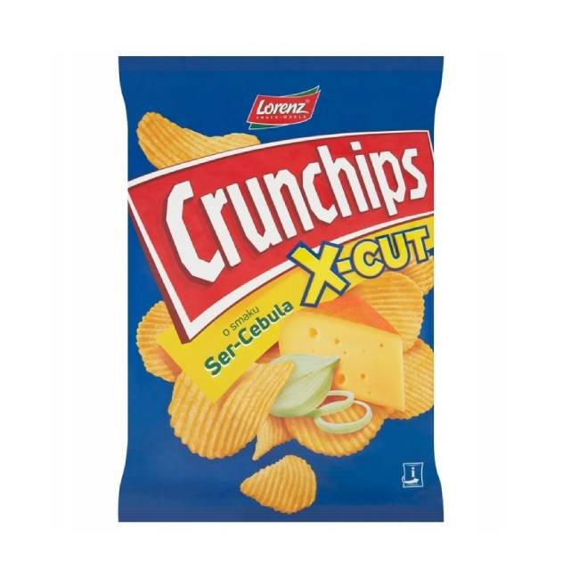 Chipsy ziemniaczane grubo krojone o smaku sera i cebuli. Jest Crunchips jest impreza Impreza? Zawsze! Podziel się paczką ze swoja paczką Wjeżdża Crunchips! Mamy melanż!