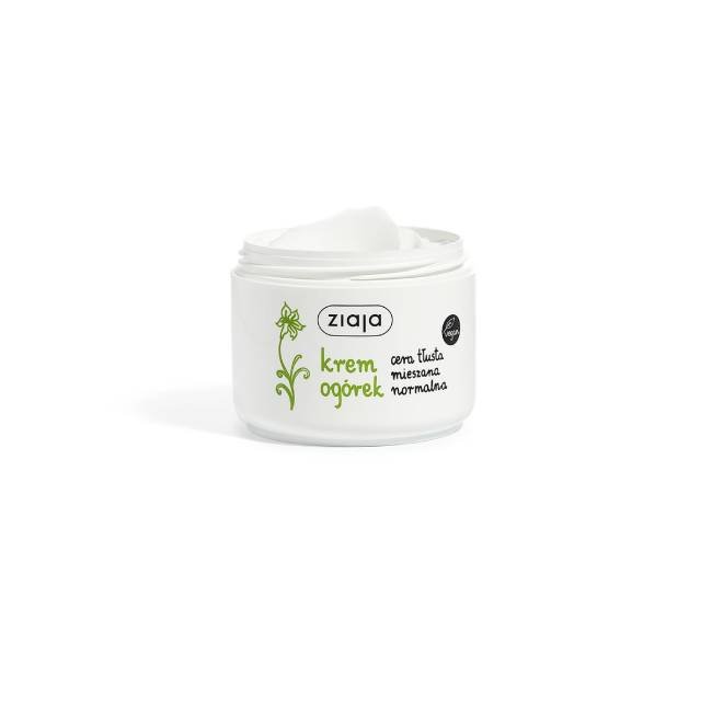 Lekki, nawilżający krem do twarzy z ekstraktem z ogórka, witaminą E i prowitaminą B5. Szybko się wchłania, koi i wspiera równowagę skóry. Ziaja Krem ogórkowy to delikatny krem do codziennej pielęgnacji skóry twarzy, szyi i dekoltu, szczególnie polecany cerze normalnej, mieszanej i tłustej (także ze skłonnością do wyprysków). Dzięki lekkiej konsystencji łatwo się rozprowadza i nie pozostawia tłustej warstwy. Ekstrakt z ogórka wspiera nawilżenie i ukojenie, a witamina E i D‑pantenol pomagają w regeneracji i wzmocnieniu bariery naskórka.