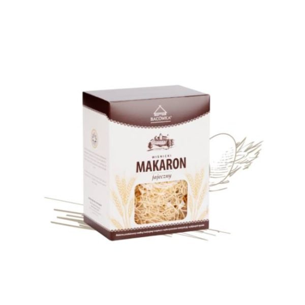 Bacówka Makaron rosołowy 250 g to tradycyjny makaron jajeczny, idealny do rosołu, bulionów oraz lekkich zup domowych. Produkt przygotowywany jest ze świeżych jaj i mąki pszennej, dzięki czemu po ugotowaniu ma delikatną strukturę i klasyczny smak. To wygodny wybór do codziennej kuchni oraz tradycyjnych polskich obiadów.Bacówka Makaron rosołowy 250 g to klasyczny makaron jajeczny przeznaczony przede wszystkim do rosołu i innych klarownych zup. Producent podkreśla, że jest wytwarzany ze świeżych jaj wybijanych ręcznie i bez dodatku barwników, co nadaje mu bardziej tradycyjny charakter. Dzięki odpowiednio dobranym składnikom makaron dobrze sprawdza się zarówno w codziennym gotowaniu, jak i podczas przygotowywania bardziej domowych, tradycyjnych posiłków.