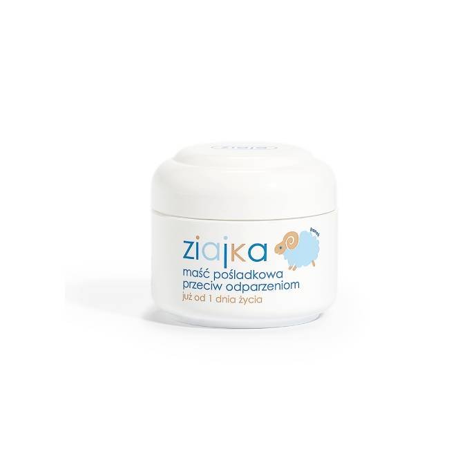 Ochronna maść do pielęgnacji skóry pod pieluszką. Tworzy barierę przed wilgocią, łagodzi zaczerwienienia i pomaga zapobiegać odparzeniom. Ziajka maść pośladkowa przeciw odparzeniom jest przeznaczona do codziennej pielęgnacji wrażliwej skóry niemowląt i małych dzieci. Dzięki tlenkowi cynku tworzy na skórze warstwę ochronną stanowiącą barierę dla wilgoci, co wspiera profilaktykę odparzeń. Formuła zawiera m.in. lanolinę, olej słonecznikowy, D‑pantenol oraz wyciąg z bawełny, które wspierają komfort skóry i pomagają łagodzić podrażnienia.
