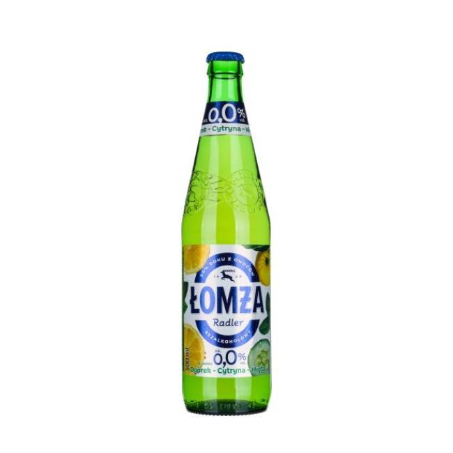 Łomża Radler 0,0% Ogórek–Cytryna–Mięta 500 ml to bezalkoholowy napój piwny o wyjątkowo orzeźwiającym smaku ogórka, cytryny i mięty. Lekki, gazowany i świeży w smaku, dobrze sprawdza się w ciepłe dni, do grilla, spotkań towarzyskich oraz jako napój do codziennego picia.Łomża Radler 0,0% Ogórek–Cytryna–Mięta 500 ml to połączenie piwa bezalkoholowego z napojem o smaku ogórkowo-cytrynowo-miętowym. Produkt wyróżnia się świeżym, letnim profilem smakowym, w którym wyczuwalna jest soczysta cytryna, delikatna nuta ogórka oraz lekki akcent mięty. Gazowana, pasteryzowana formuła sprawia, że napój jest przyjemnie rześki i dobrze gasi pragnienie. Dzięki zawartości 0,0% alkoholu może być dobrym wyborem dla osób, które szukają alternatywy dla klasycznego piwa i radlera bez alkoholu.