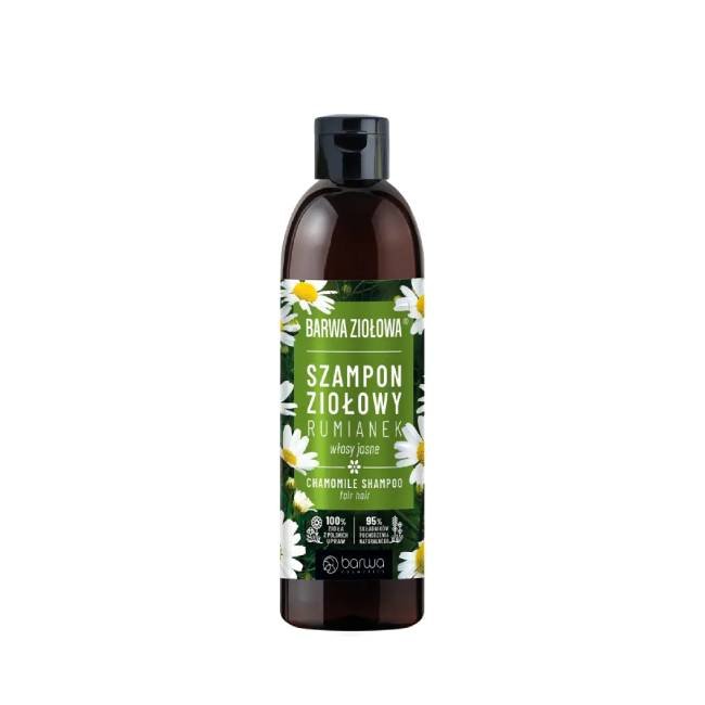 Szampon rumiankowy do włosów z serii Barwa Ziołowa do włosów jasnych, którego receptura została oparta na tradycyjnych formułach szamponów ziołowych, znanych i stosowanych od pokoleń.