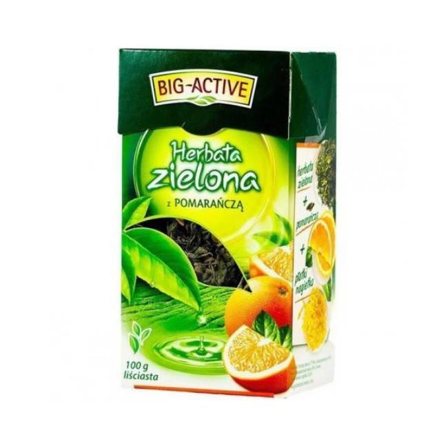 Big-Active Zielona herbata z pomarańczą to kompozycja, która łączy delikatną zieloną herbatę z wyraźną nutą cytrusów. Dodatek skórki oraz owocu pomarańczy podkreśla świeżość naparu, a aromaty cytrusowe nadają mu intensywniejszy, owocowy charakter. To dobry wybór na co dzień – świetnie sprawdza się rano lub w ciągu dnia jako lekka alternatywa dla kawy. Napar smakuje dobrze zarówno na ciepło, jak i na zimno: po schłodzeniu z lodem i plasterkiem cytryny/pomarańczy tworzy prostą, domową herbatę mrożoną.